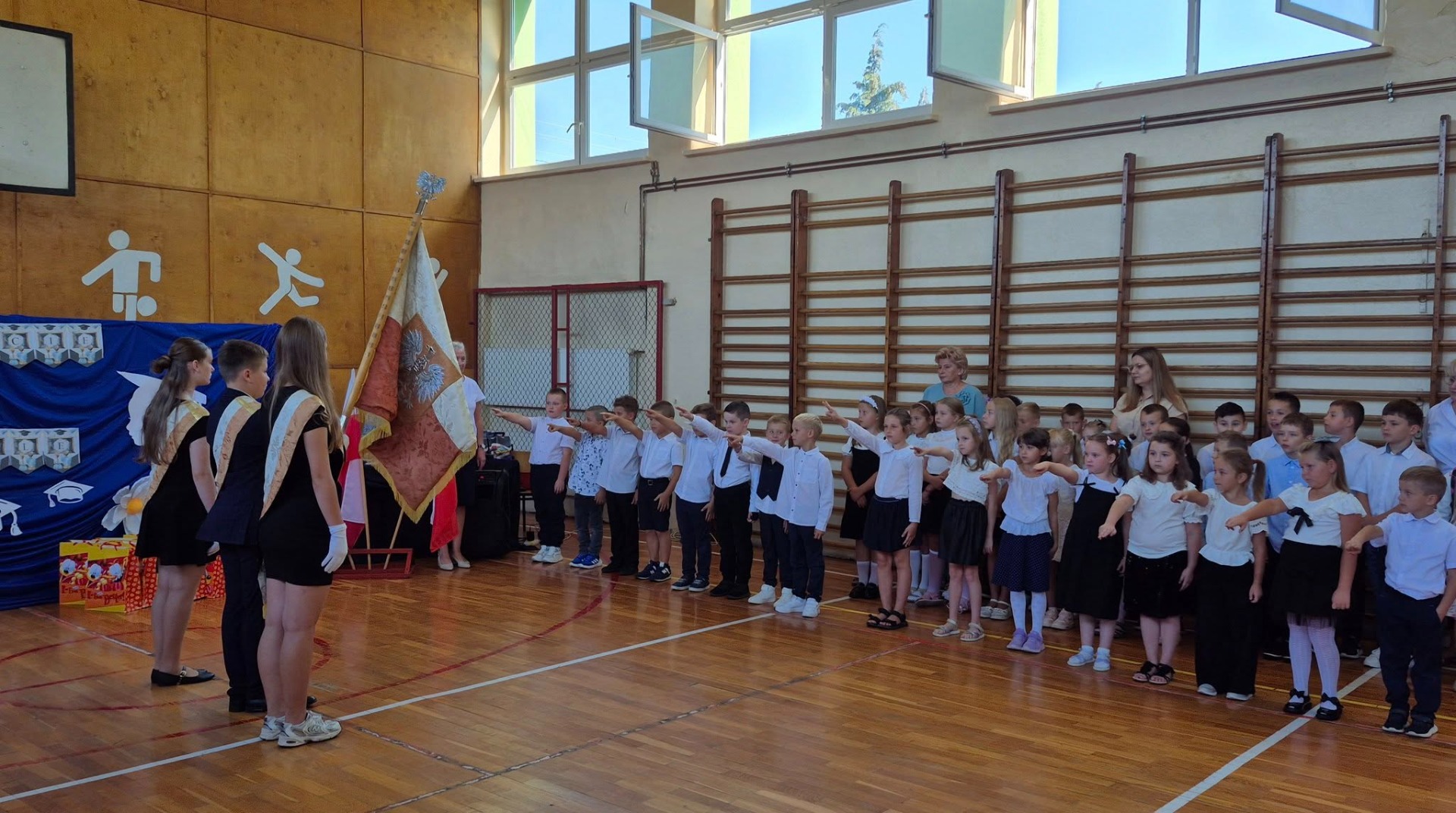 Dnia 1 września br. w naszej szkole został zaingurowany rok szkolny 2025/2026. Uroczystość rozpoczęła się mszą św. w Kościele św. Trójcy w Paszowicach. Po uroczystym wprowadzeniu sztandaru i odśpiewaniu hymnu państwowego Dyrektor Szkoły Teresa Adamczyk oraz przewodniczący Samorządu Uczniowskiego Maciej Olanin powitali Wójta Gminy Paszowice Sebastiana Oszczędę, Zastępcę Wójta Dawida Grabarka, Księdza Kazimierza Gębarowskiego i wszystkich zebranych: przedszkolaków, uczniów, rodziców i pracowników szkoły. Uczniom i gronu pedagogicznemu u progu nowego roku szkolnego złożono życzenia wytrwałości w realizacji zamierzonych celów oraz sukcesów w pracy i nauce. Eliasz Sałamacki odczytał tekst upamiętniający 86. rocznicą wybuchu II wojny światowej. Bohaterami uroczystości stali się pierwszoklasiści, którzy złożyli ślubowanie bycia dobrym Polakiem i dbania o dobre imię swojej klasy i szkoły. Ważnym momentem stało się pasowanie na ucznia, którego dokonała Dyrektor Szkoły przez symboliczne dotknięcie każdego dziecka wielkim piórem. Rada klasowa Rodziców oraz Wójt Gminy Paszowice Sebastian Oszczęda wręczyli pierwszoklasistom dyplomy i upominki. W poczet pełnoprawnych uczniów zostali przyjęci: Adamczyk Jan, Bartkowiak Natalia, Caputa Miłosz, Grządziel Filip, Gwoździewicz Piotr, Hara Laura, Krzyżanowski Antoni, Kupczyk Aleksander, Łakomiec Bruno, Makuchowski Jan, Marszałek Marcin, Płaza Karol, Prycik Julian, Rusnarczyk Milena, Sałamaj Sara, Stuła Antonina, Wałach Lena oraz Zych Agata. Po uroczystym włączeniu pierwszoklasistów do społeczności szkolnej nastąpiło oficjalne otwarcie boiska szkolnego, a następnie wszyscy uczniowie udali się na spotkania z wychowawcami. Uczniowie klas I-VIII odebrali plany lekcji i podręczniki. Skończyły się wakacje i nadszedł czas wytężonej pracy.