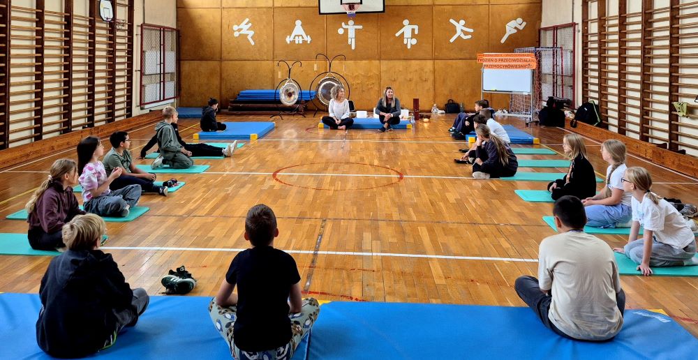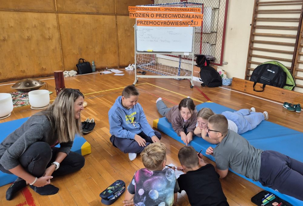 Od 29 września do 3 października trwa w Szkołach w całej Polsce Tydzień o Przeciwdziałaniu Przemocy Rówieśniczej. Podejmowane w tym czasie działania mają służyć tworzeniu bezpiecznego, wspierającego i przyjaznego środowiska, w którym każdy czuje się akceptowany i ważny. Nauczyciele przeprowadzą szereg działań profilaktycznych i wspierających budowanie właściwych relacji rówieśniczych. Jednym z tych działań stały się zajęcia warsztatowe przeprowadzone dla klas 4-5 przez szkolnego pedagoga p. Martę Rodziewicz i psychologa p. Katarzynę Wolańską. Spotkanie miało na celu podnoszenie świadomości dotyczącej różnych przejawów przemocy – fizycznej, psychicznej czy tej w sieci – oraz sposobów radzenia sobie w takich sytuacjach. Ostatnim etapem zajęć była joga Nidra, która pomogła uczniom zrelaksować się i wyciszyć. Zajęcia zakończyły się krótkim koncertem instrumentów terapeutycznych. Dlaczego ważne są takie spotkania : 44% młodych osób w 2023 r. doświadczyło przemocy psychicznej, a 48% fizycznej. 79 % dzieci i nastolatków choć raz zetknęło się z przemocą. 26% nastolatków było ofiarami przemocy seksualnej bez kontaktu fizycznego, a co trzynasty – z kontaktem. 32% doznało przemocy ze strony bliskiego dorosłego. Wspólnie więc kreujmy środowisko, w którym wszyscy czują się dobrze i bezpiecznie!
