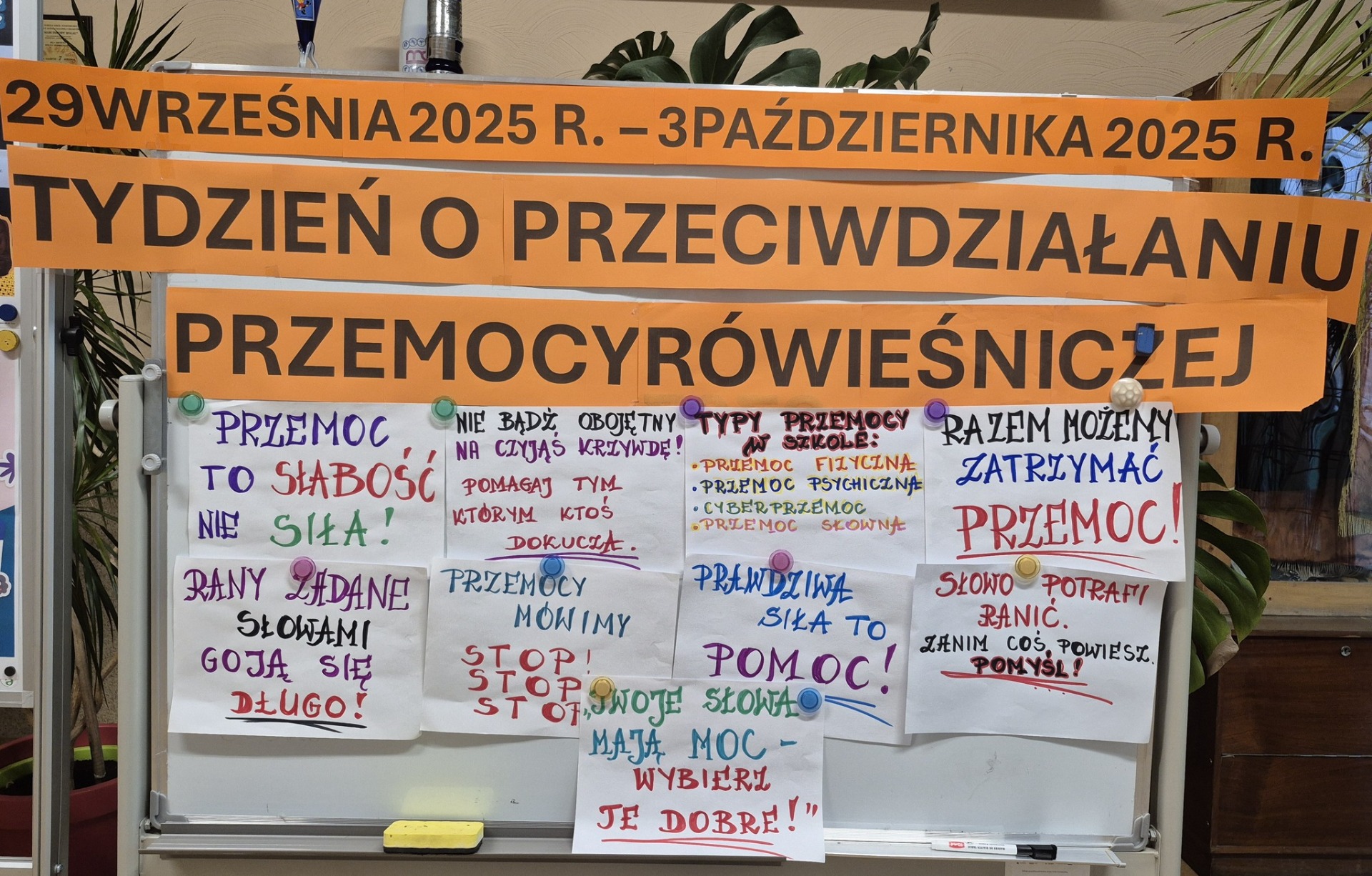 Podczas Tygodnia o Przeciwdziałaniu Przemocy Rówieśniczej pokazaliśmy wspólnie, jak ważne jest bezpieczeństwo uczniów i budowanie relacji opartych na szacunku. Badania pokazują, że 44% młodych osób doświadczyło przemocy psychicznej, a 48% przemocy fizycznej. Coraz częściej przybiera ona formy wykluczania, hejtu w Internecie czy szantażu. Dlatego nadal będziemy rozpoznawać zagrożenia, reagować , gdy dzieje się coś złego i budować zdrowe relacje w szkole oraz walczyć z przemocą i wykluczeniem.